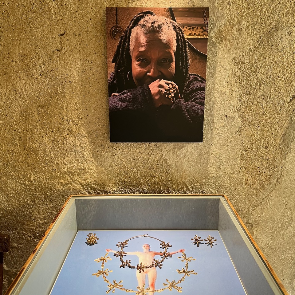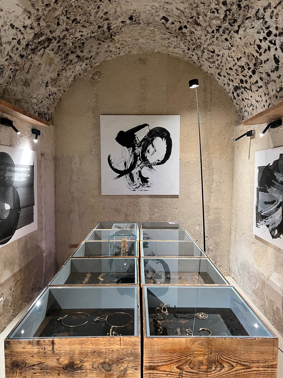 10世紀~11世紀に建てられた「バッソ(basso)」と呼ばれる邸宅をリノベーションした空間は、伝統とモダンが重なり、モニカのジュエリーの世界観を体現しているかのような空間。