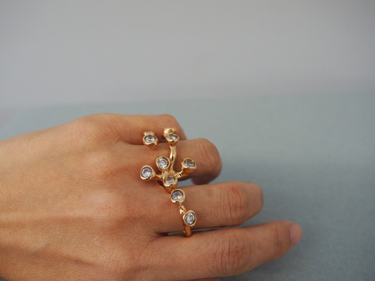 大胆なデザインでありながら、華やかに飾るようなジュエリーとも一線を画し、むしろ余白をまとうようなリング。